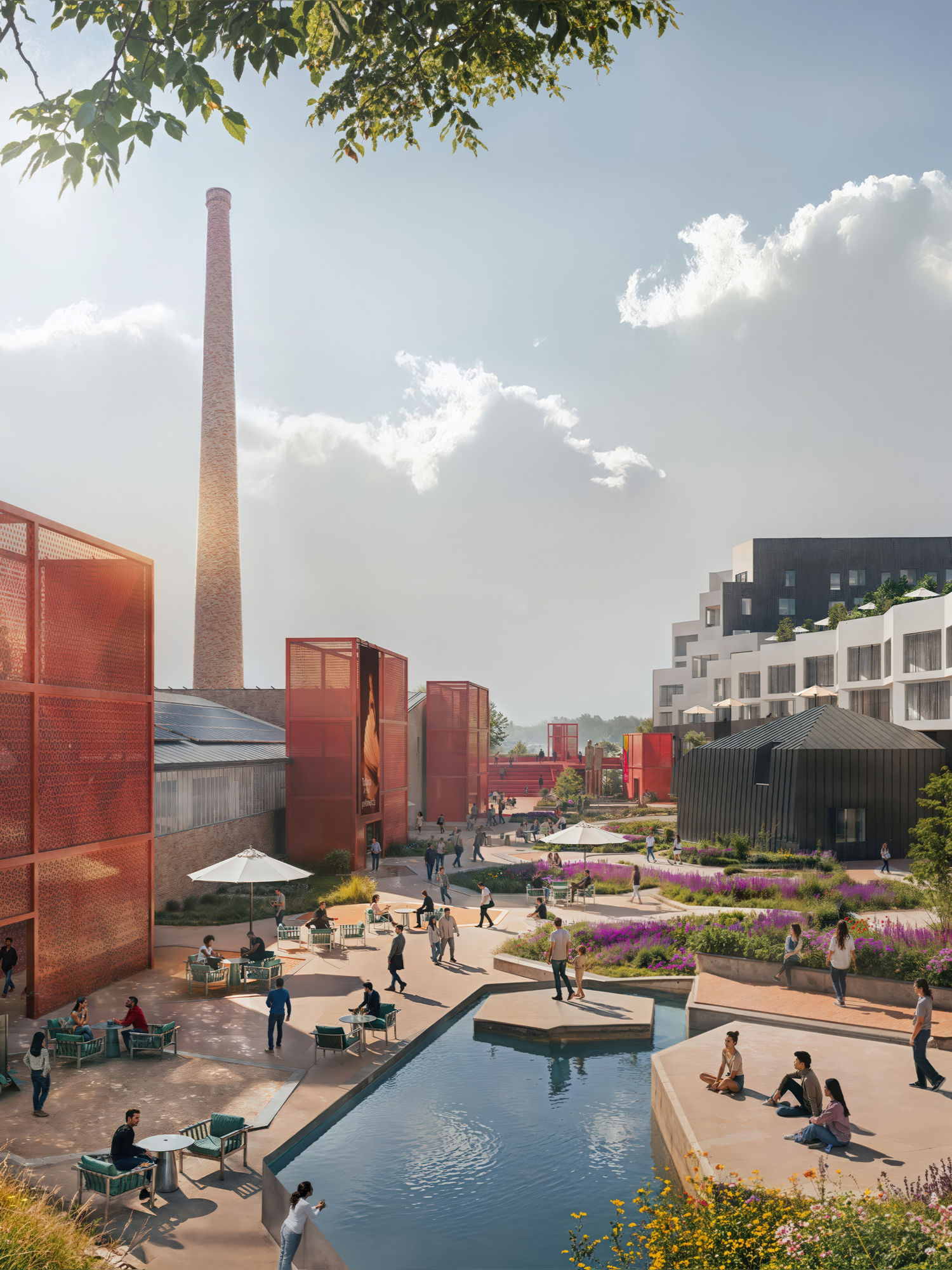 The architecture embraces a simple, honest, and robust expression that reflects the values of craftsmanship and sustainability. Materials are celebrated in their natural state — timber, brick, slate, and concrete are left exposed, showcasing their tactile qualities and durability. The design balances functional clarity with spatial richness, offering varied learning environments, from workshops and classrooms to communal and outdoor spaces. The composition of volumes and courtyards creates a strong identity, while connecting harmoniously to the surrounding landscape.
