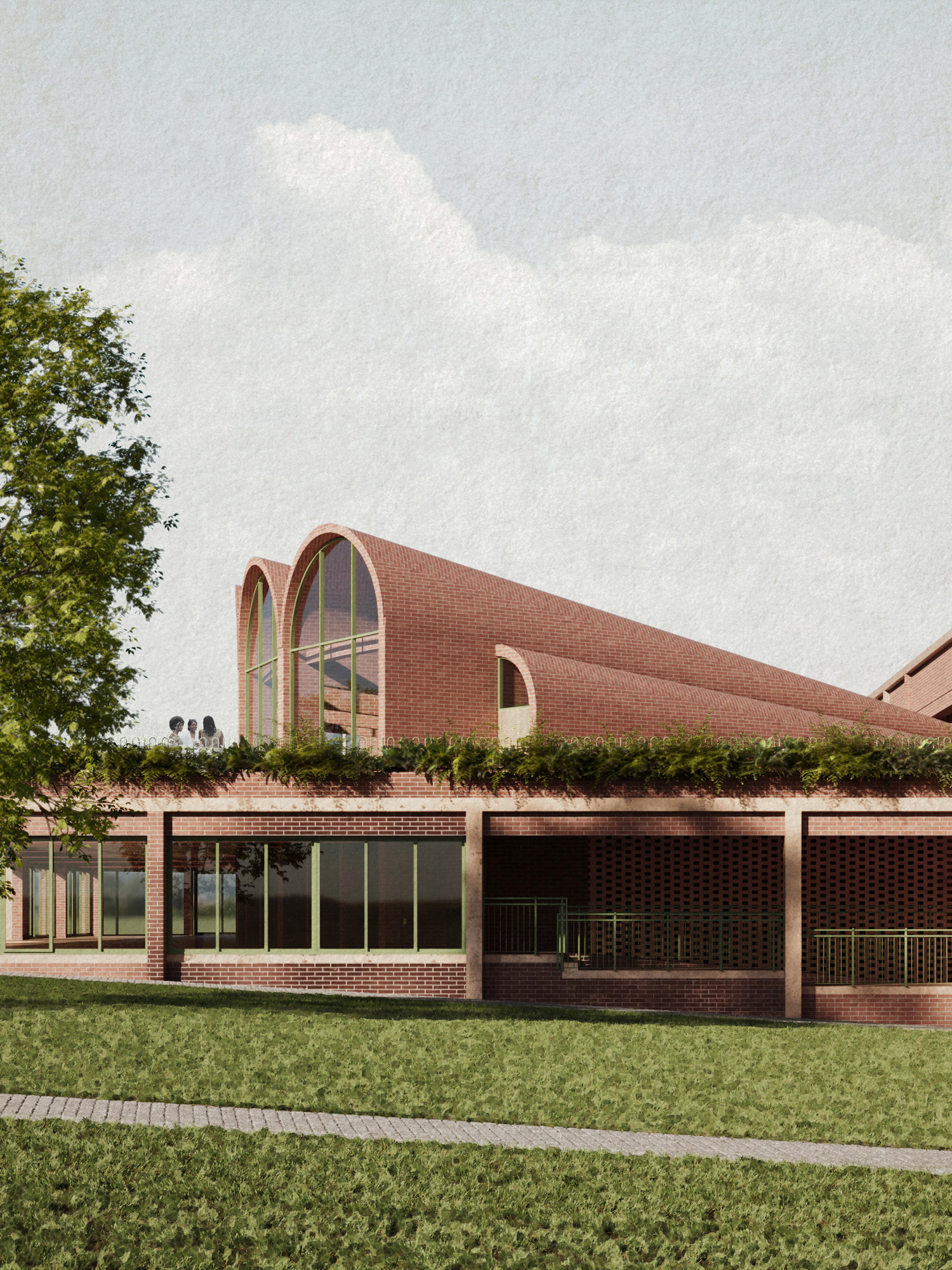 Protective measures safeguard people and property from fire risks. The market features low-tech systems, such as rainwater harvesting, to water plants, maintain cleanliness, and supply water for fire safety. Connecting five open courtyards, the market embraces native plants, creating green spaces that attract biodiversity and significantly improve user experience. Crucially, the project integrates essential public services—including a police station, fire station, infirmary, market administration, and security services—to prioritize urban and social integration.